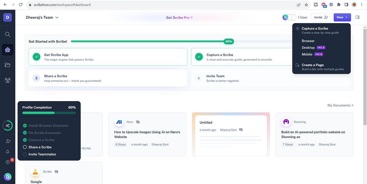 我非常欣赏Scribe能让团队在工作时自动捕获和记录流程,执行任务时会记录每个步骤(包括截图),最后将其编译成清晰的逐步操作指南。这对于需要精确细节的教程内容和培训材料制作尤为实用。