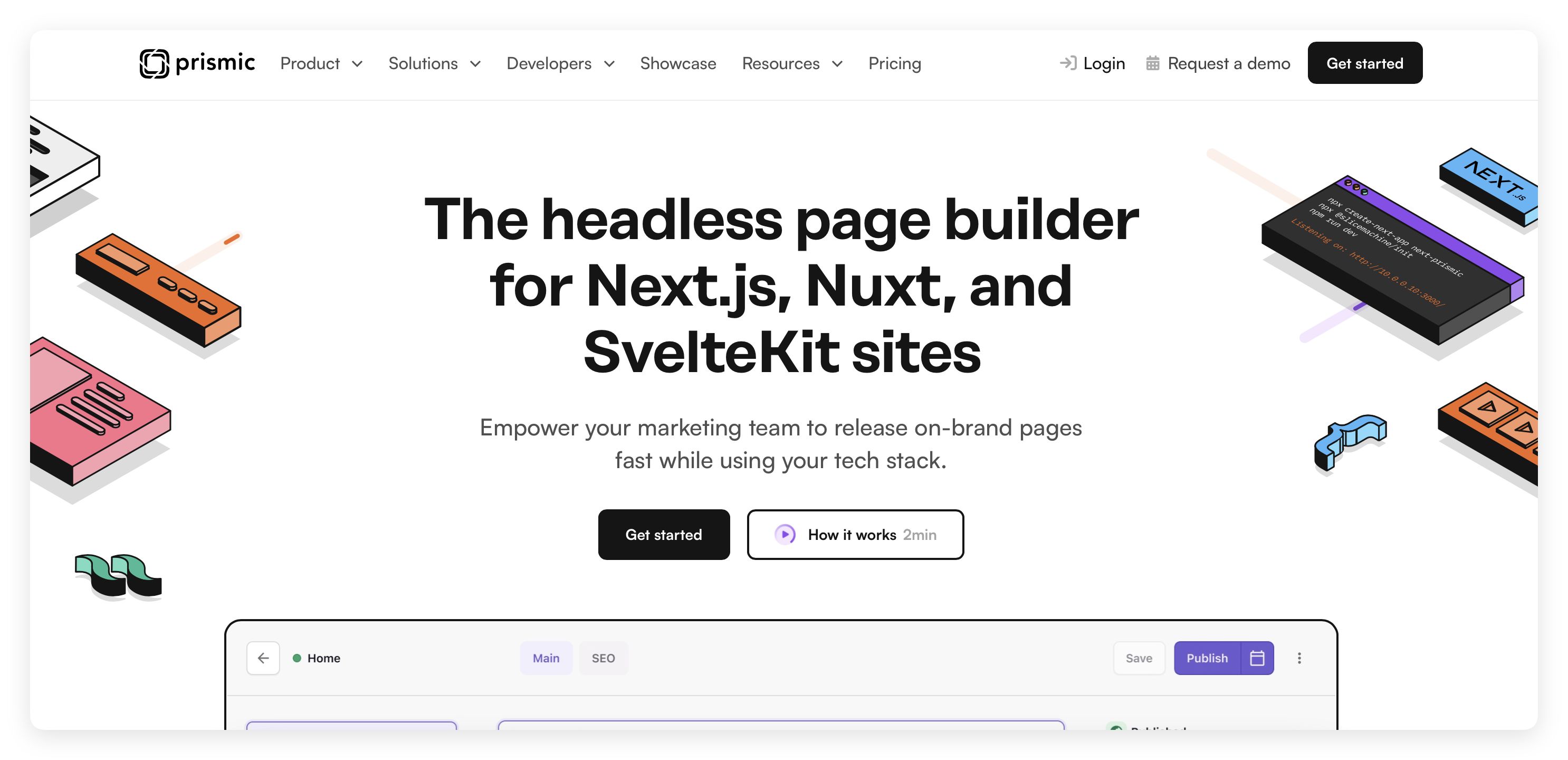 Prismic以其用户友好的内容编辑器和名为"切片机器"的灵活组件系统著称。Prismic的模块化内容建模让用户无需牺牲设计或功能,即可轻松构建动态、可复用的内容区块。