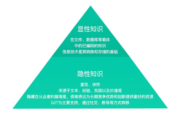 在任何有效的知识管理项目中,识别不同类型的知识都至关重要。组织内的知识通常可分为三大类:隐性知识、默认知识和显性知识。