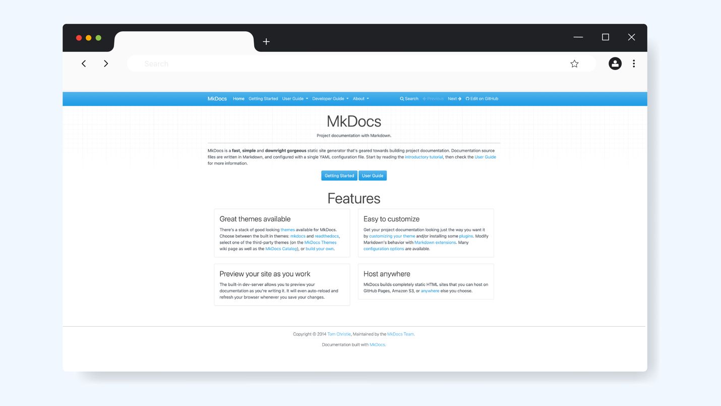 MkDocs 是一款用于创建在线文档的静态网站生成器。它是一个开源解决方案,除了开发时间外无需任何成本。