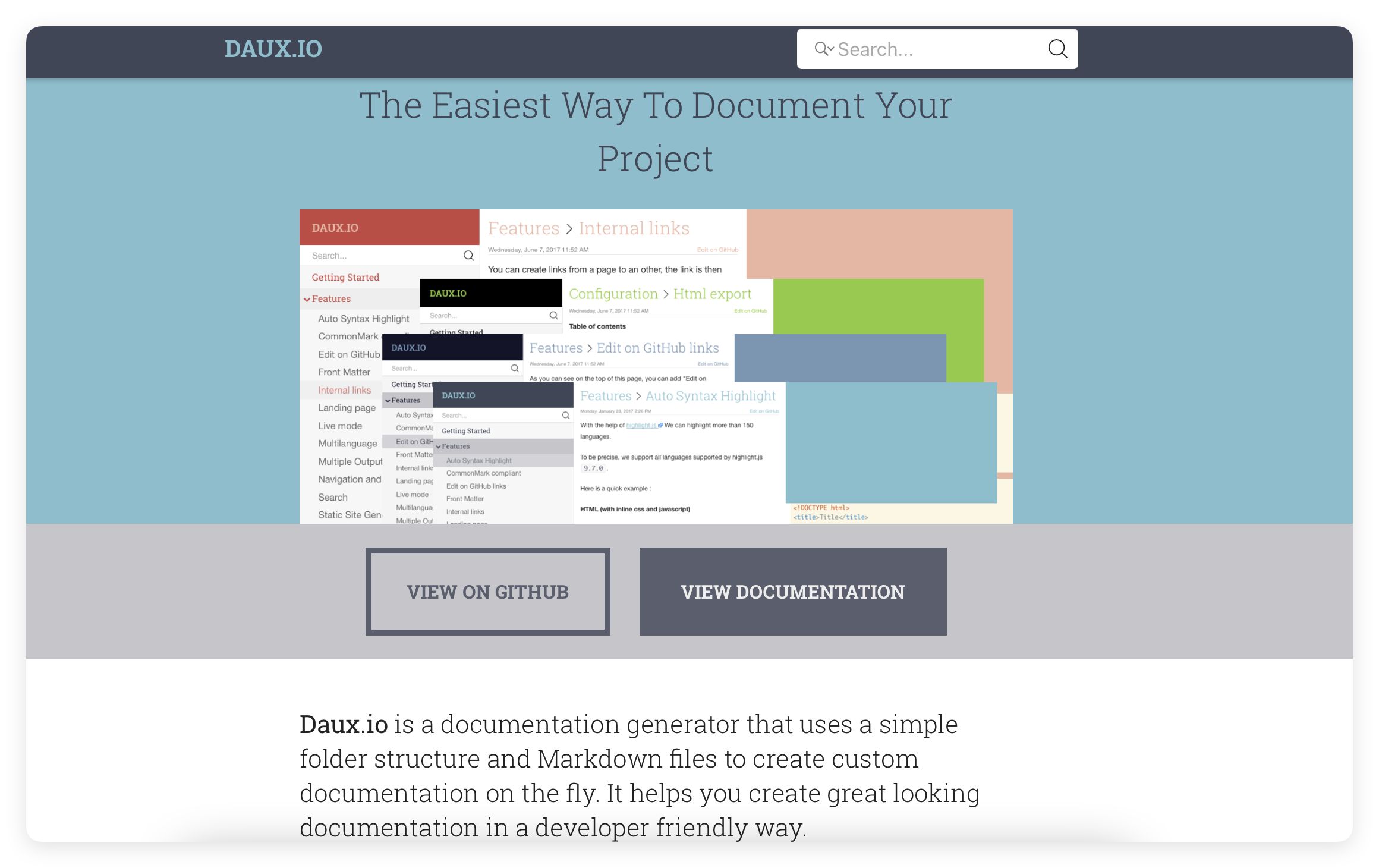 Daux.io 的一个关键特点是其简单易用性。开发人员可以轻松设置和使用,其简洁直观的界面便于创建和管理文档。该工具轻量且高效,能够快速生成文档。