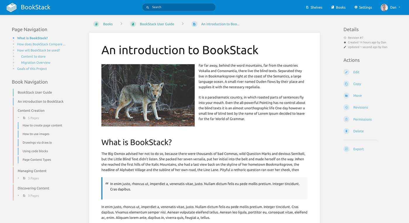 BookStack是另一款维基风格的技术文档工具。它是开源、可自托管且高度灵活的解决方案。