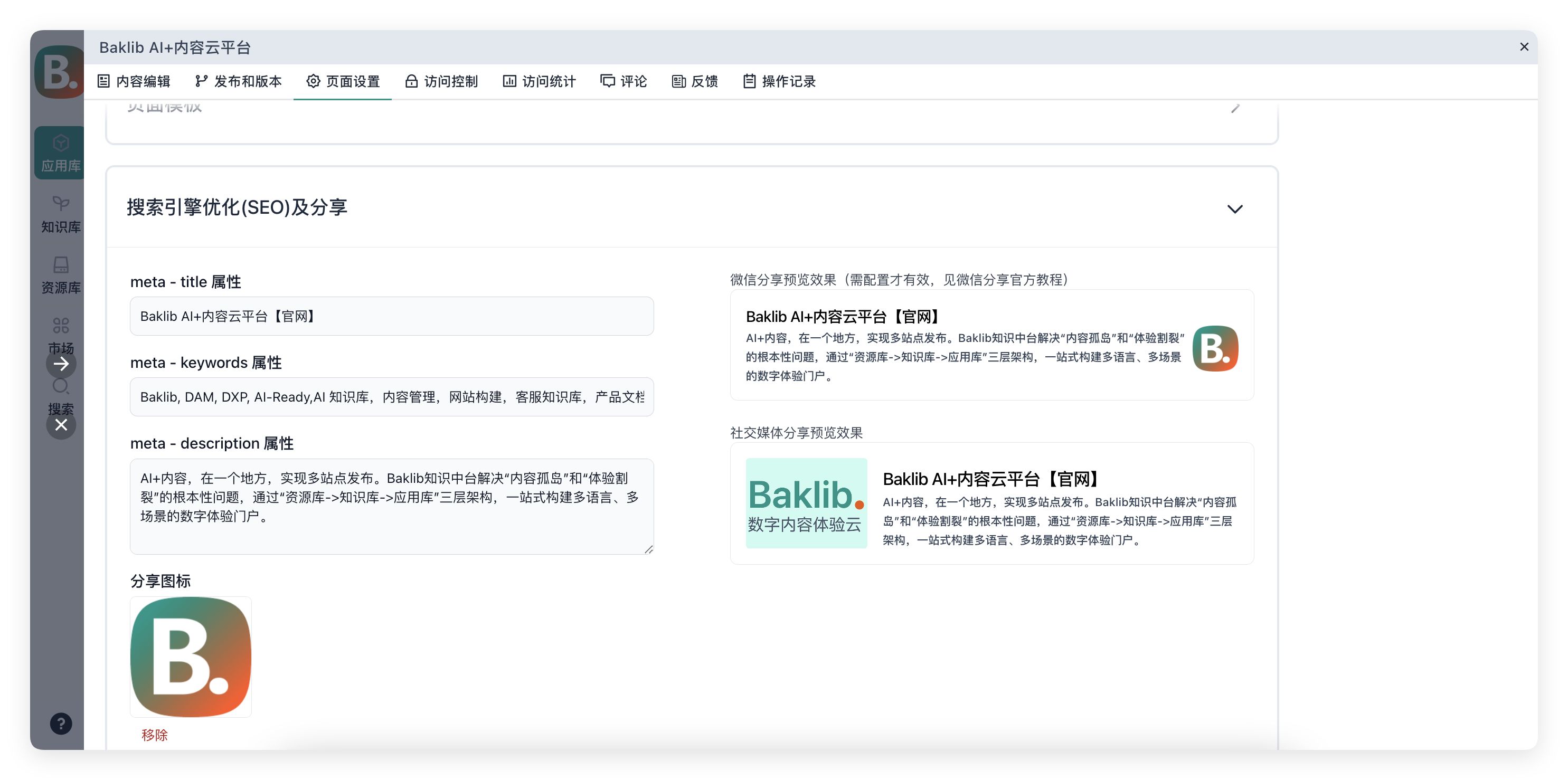 同时,借助 Baklib 内容管理系统,医疗机构可轻松管理页面元数据、关键词与Open Graph设置,实现内容统一优化,确保网站在搜索结果中获得更高的曝光度。