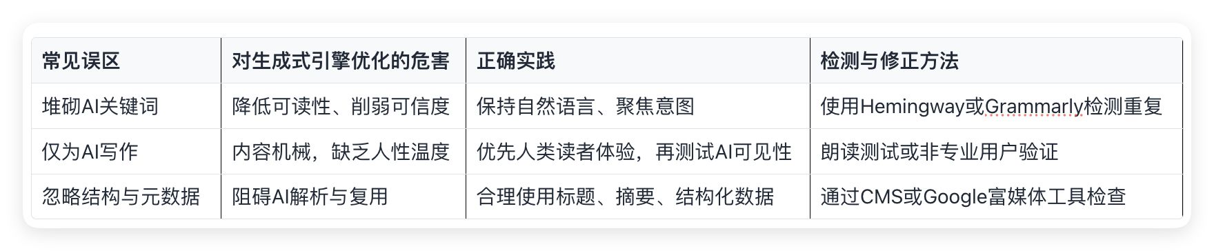 并非所有内容都需要具备超强引用价值。以本指南为例,其首要目标是帮助人类读者。它在适当处运用了生成式引擎优化最佳实践,但并未采用说明文档或问答页的结构——因为它本就不是这类内容。应用生成式引擎优化原则时,请始终以目标受众和内容目标为导向,这才是真正的核心准则。