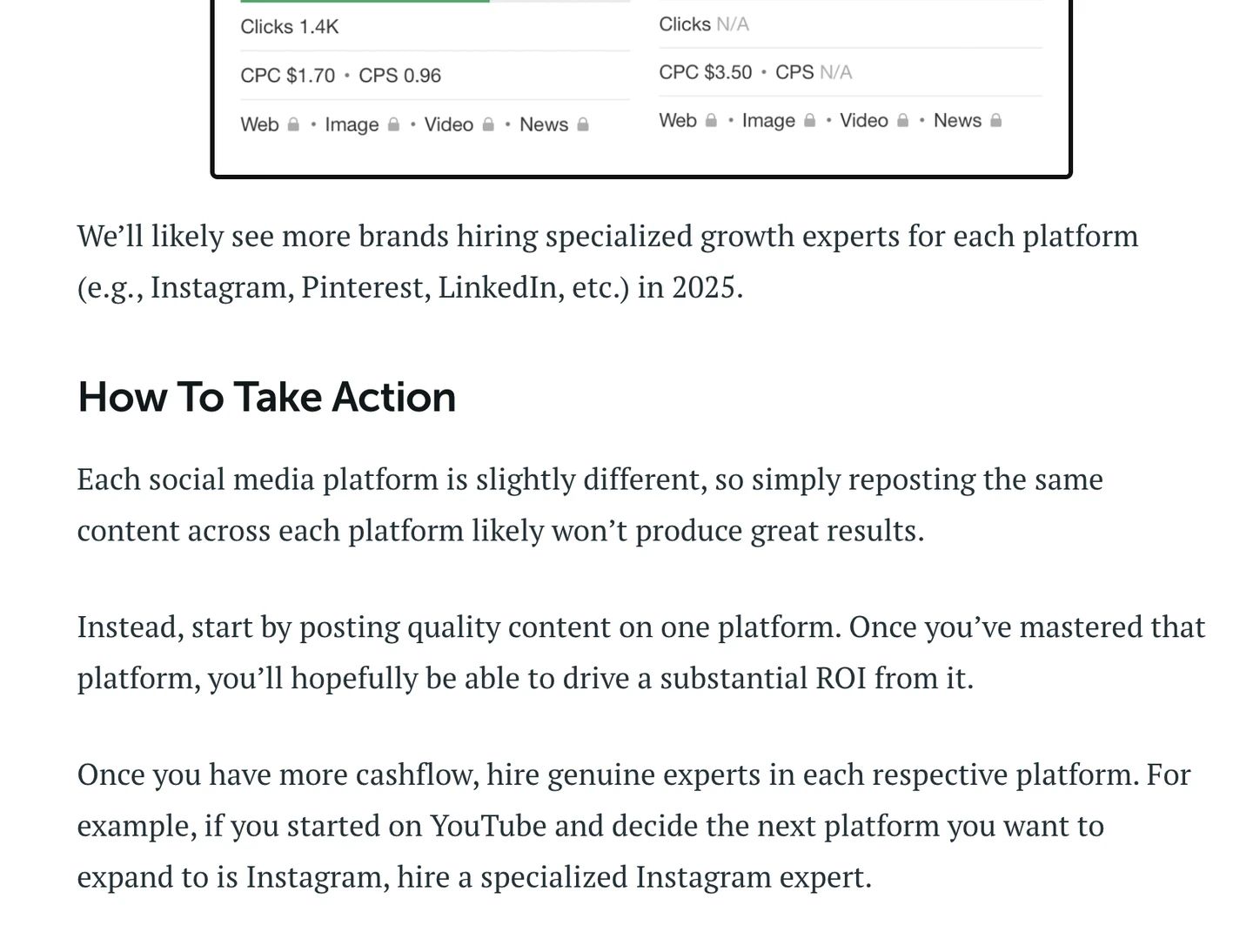 营销领域的许多文章段落通常控制在2-3句话,这样的长度更易于读者消化。来源:Copyblogger.com