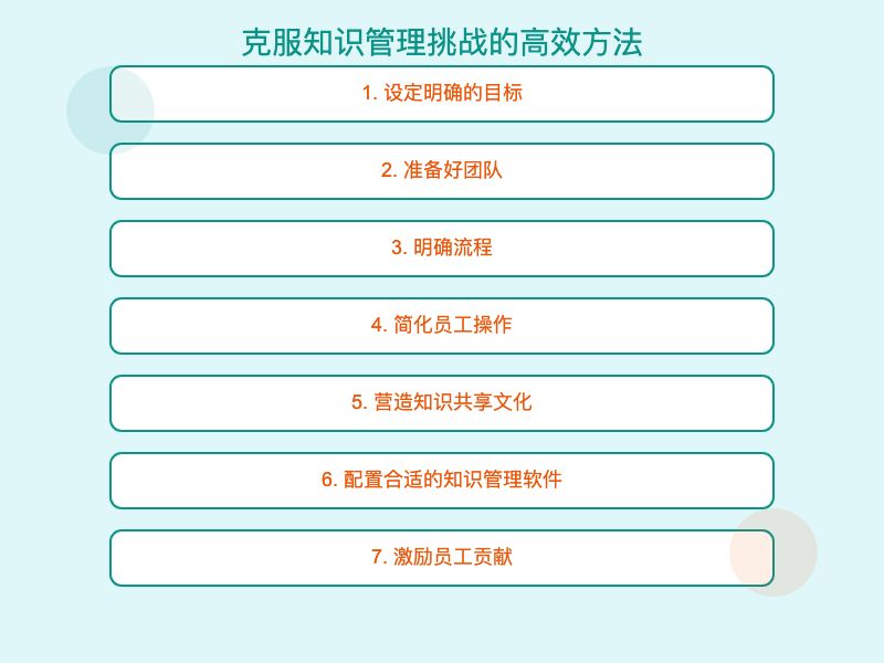 组织可以遵循具体步骤来帮助他们克服知识管理战略固有的常见知识挑战。在本节中,我们将探讨组织可以解决这些问题并在知识管理方面取得成功的七种方法。