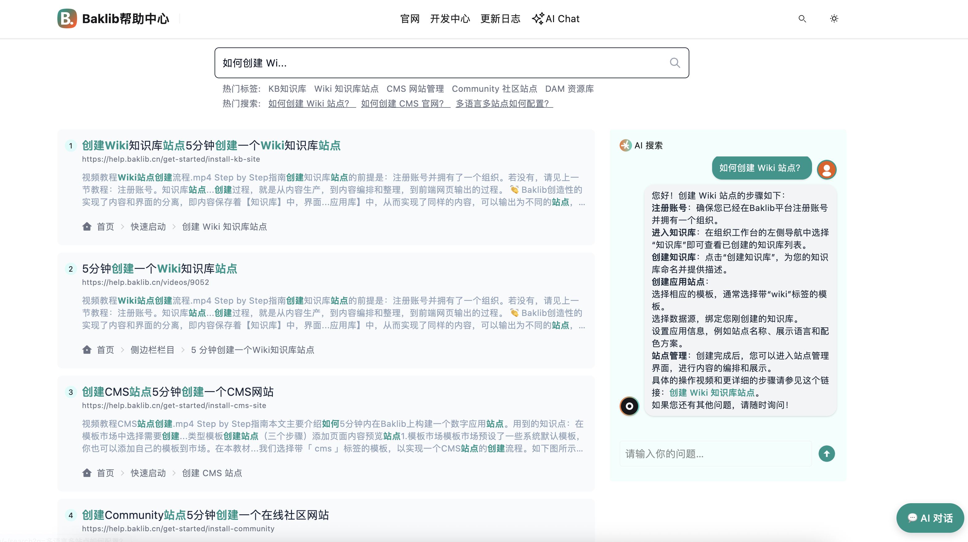 Baklib Wiki支持多层级结构、内容版本管理、权限控制、导航设计及AI智能搜索,实现内容的沉淀、使用与再创新。