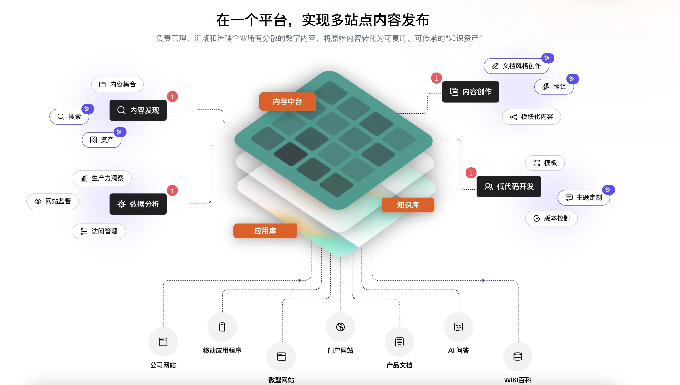 提供模板化的Wiki知识库场景,无需编码即可搭建企业内部知识站点,适用于企业培训、产品手册、内部制度、流程文档和部门知识系统。