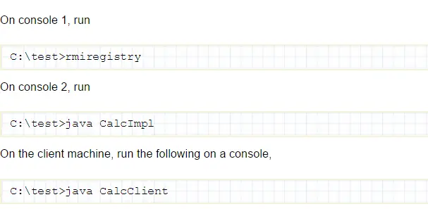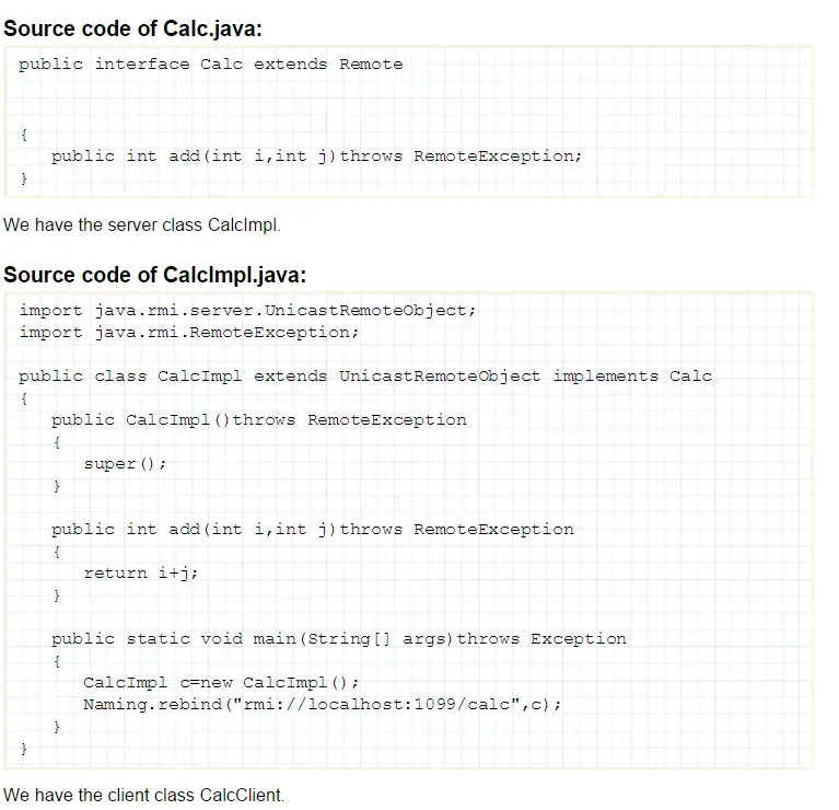考虑一个计算的应用,它有一个add的方法,你想把这个方法对外发布成一个远程对象,远程接口叫做Calc