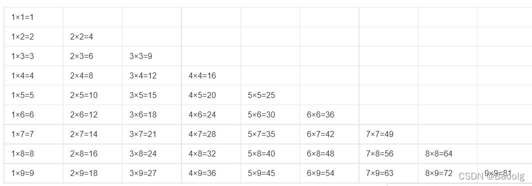 3、题目描述:打印九九乘法表