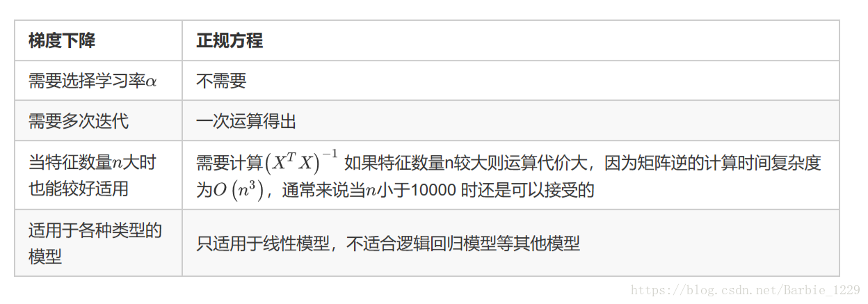 比较一下梯度下降和正规方程