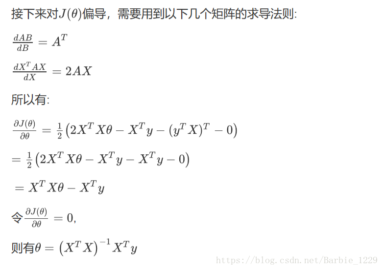 假设我们的训练集特征矩阵为X,并且训练集结果为向量y,则利用正规方程解出向量