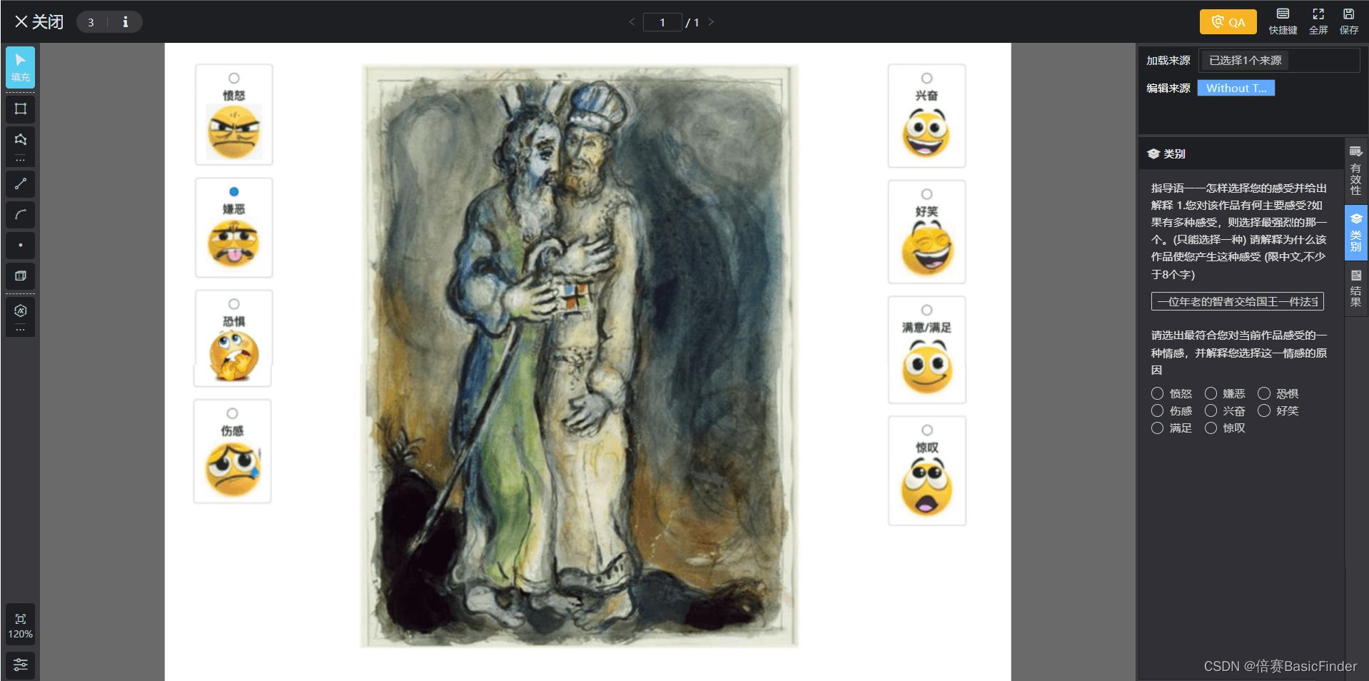 - 标注质量控制:如果内容太短,或者与其他艺术品的标题太相似,则会被拒绝。 此外,由多名审核员需要进行手动审阅检查,确保标题反映了所选的情感标签和艺术品的细节。