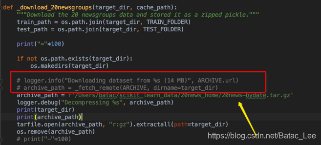 运行下载数据的时候, 总是报错, 所以自己下载数据放在 "/Users/Batac/scikit_learn_data/20news_home/" 下边,