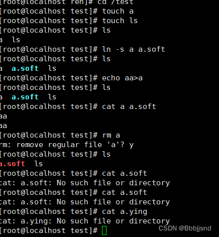 软链接的特点:通过软链接的路径访问原文件,删除软链接不会对原文件造成影响,删除了原文件 ,软链接就无法进行访问
