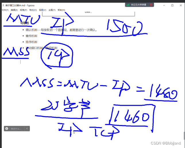 TCP依靠MSS(最大传输段)进行分段,最大值为1460