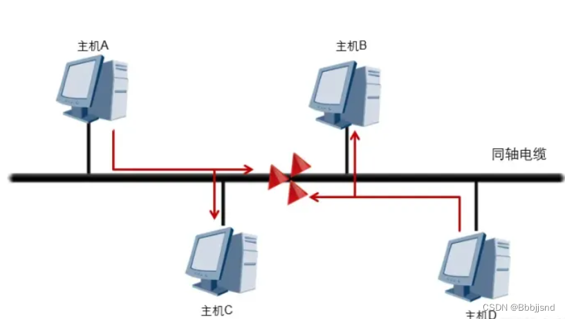---冲突域:冲突域是一个通过共享物理介质进行双向传输的所有节点的集合。当同一冲突域中的主机同时发送数据时,数据到达目的地之前可能会发生冲突。