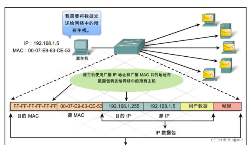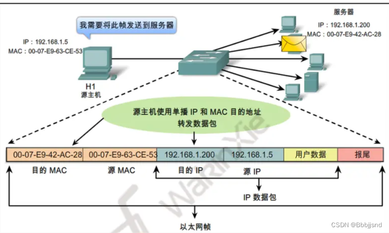 ·网络中存在单播数据,一对一传输