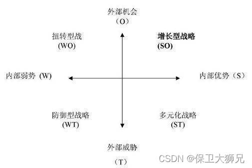 从优势(Strength)、劣势(Weakness)、机遇(Opportunity)、威胁(Threat)四个方面分析内外环境,适用于宏观分析。运用这种方法,可以对研究对象所处的情景进行全面、系统、准确的研究,从而根据研究结果制定相应的发展战略、计划以及对策等。