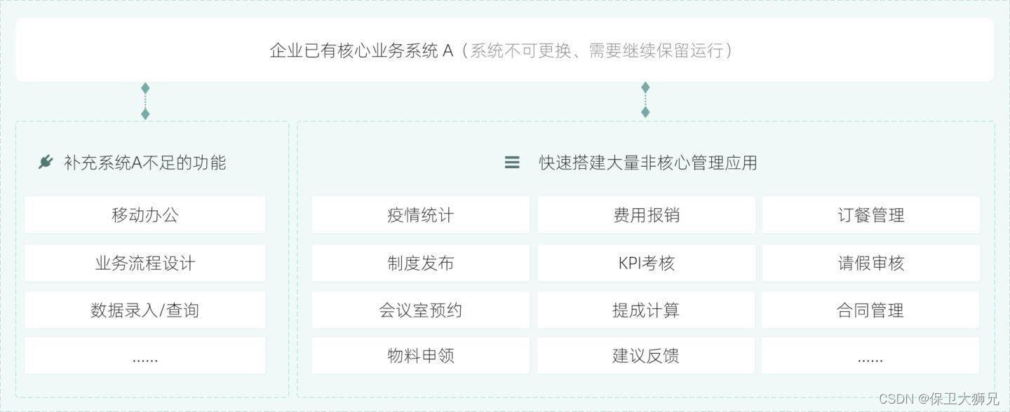 各部门面对非核心业务的管理需求时,态度非常保守,通过零代码平台可以有效打破此类困局。
