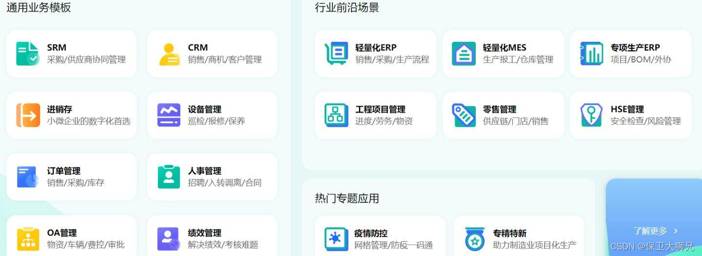 1)覆盖需求广:零代码平台一般可以覆盖各类常见的业务管理需求(如生产管理、人事管理、进销存、合同、客户管理等),只要有数据收集、分析、协作等需求,就可以直接搭建。