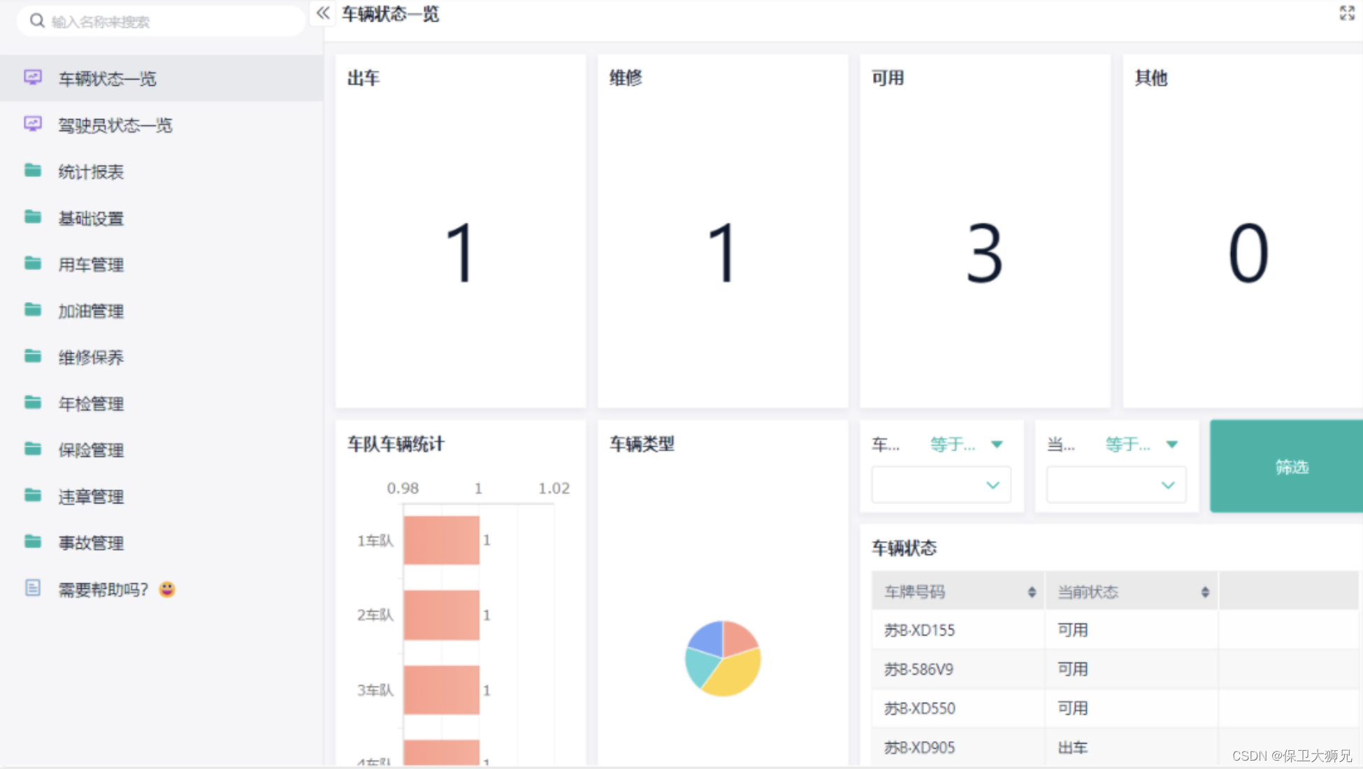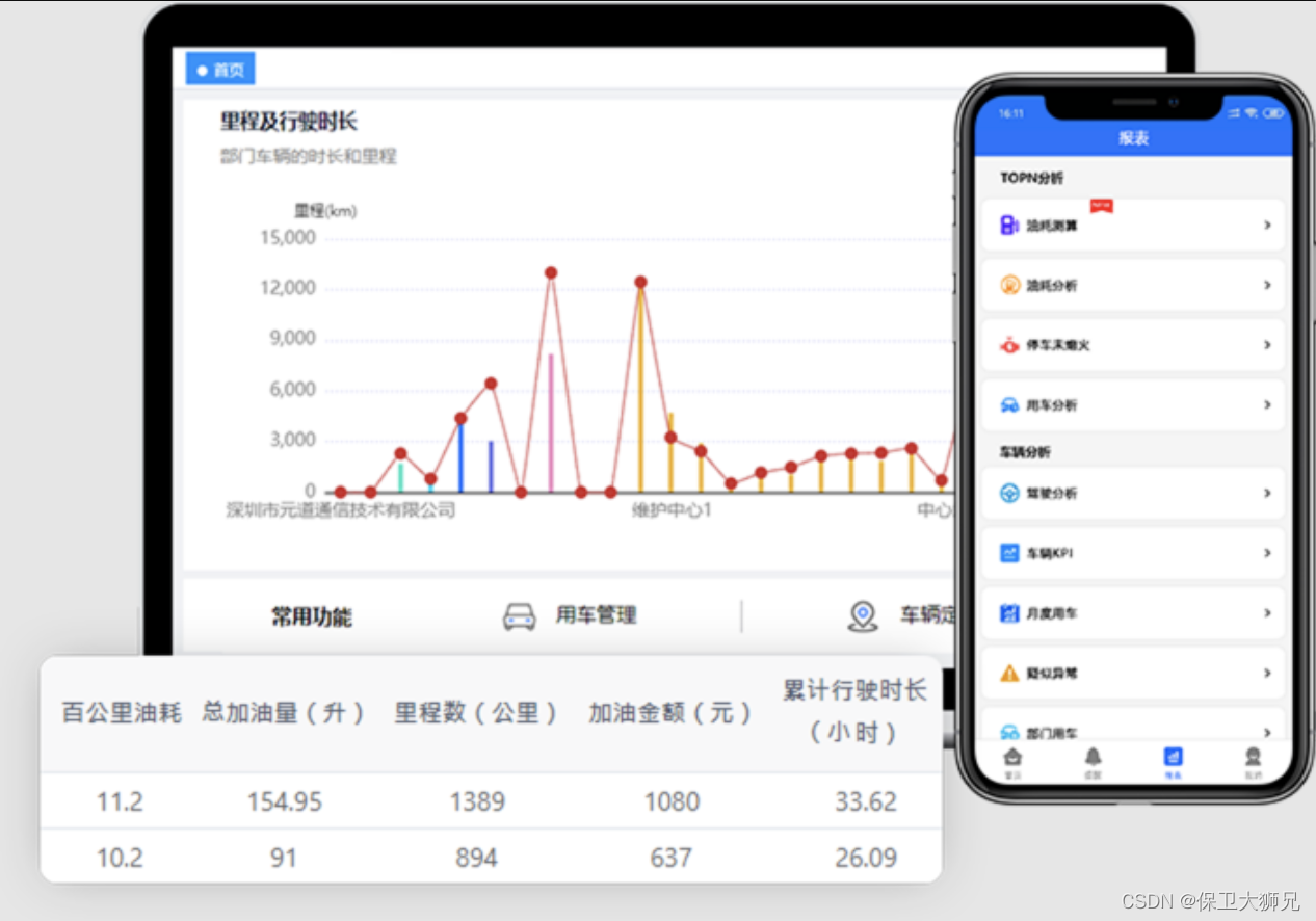 ③数据分析的结果可以通过各类图表呈现,对企业用车、车辆状态掌握得更好