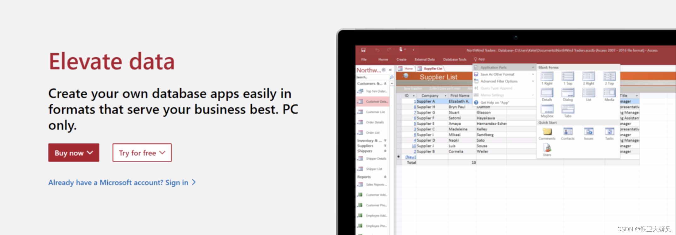 官网:https://www.microsoft.com/en-us/microsoft-365/access