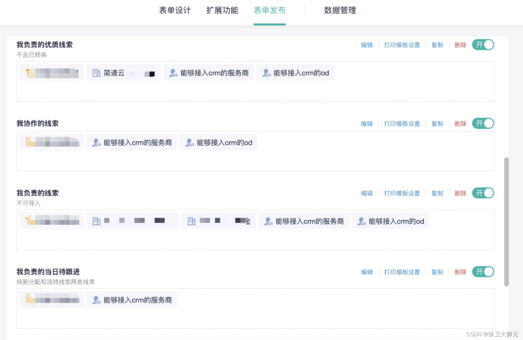 于是京源环保在简道云平台中整合所有线下流程,并在 CRM 中逐步完善商机项目登记、投标管理、合同管理等模块,再通过自定义流程管理、强大的数据分析能力和开放能力,实现了所有流程线上化、数据可视化,规范了业务流程。