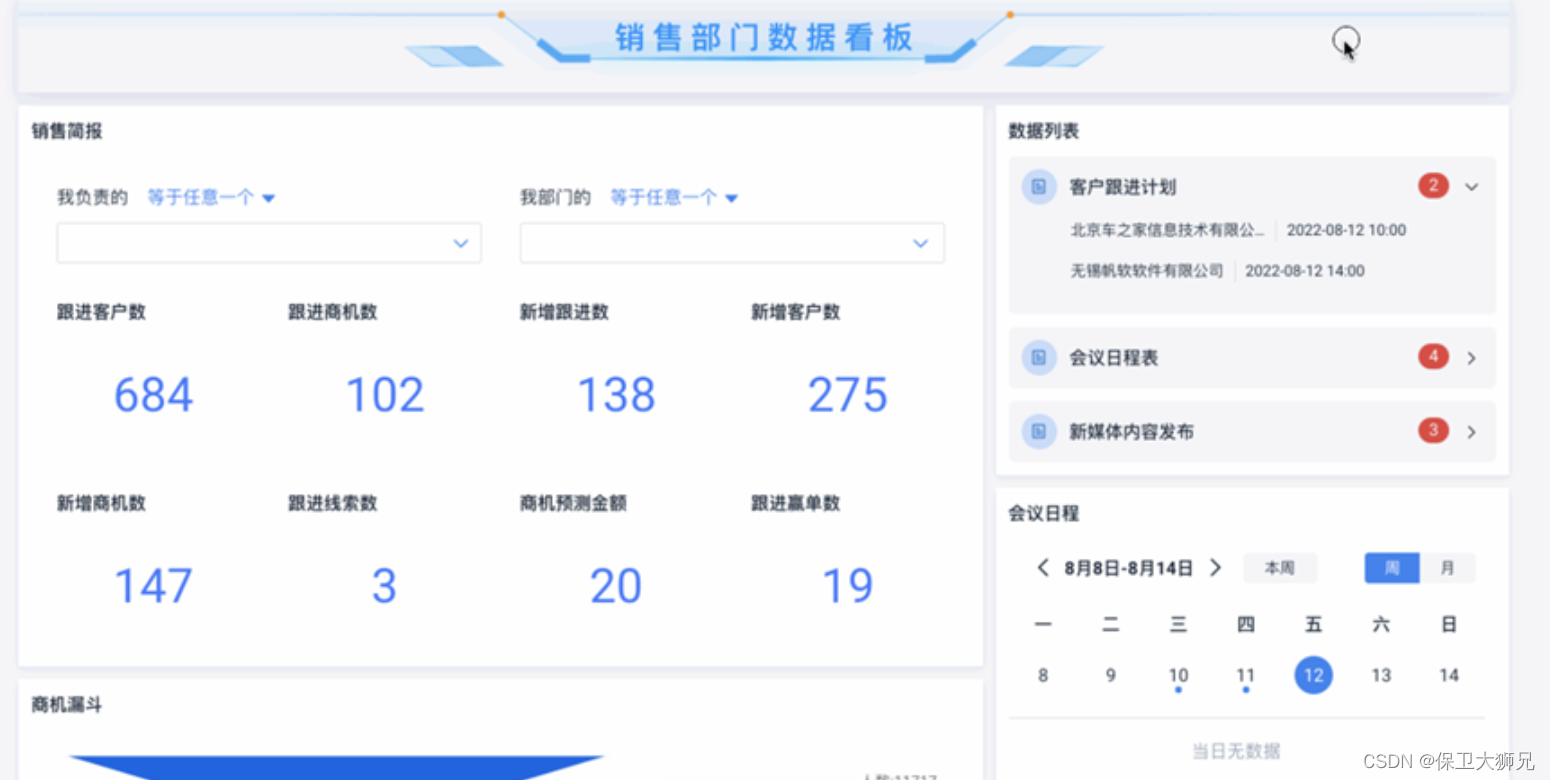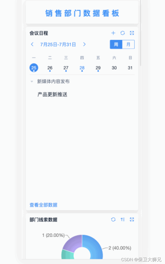 数据看板主要是为了呈现公司当前项目运营管理的相关数据和图表;