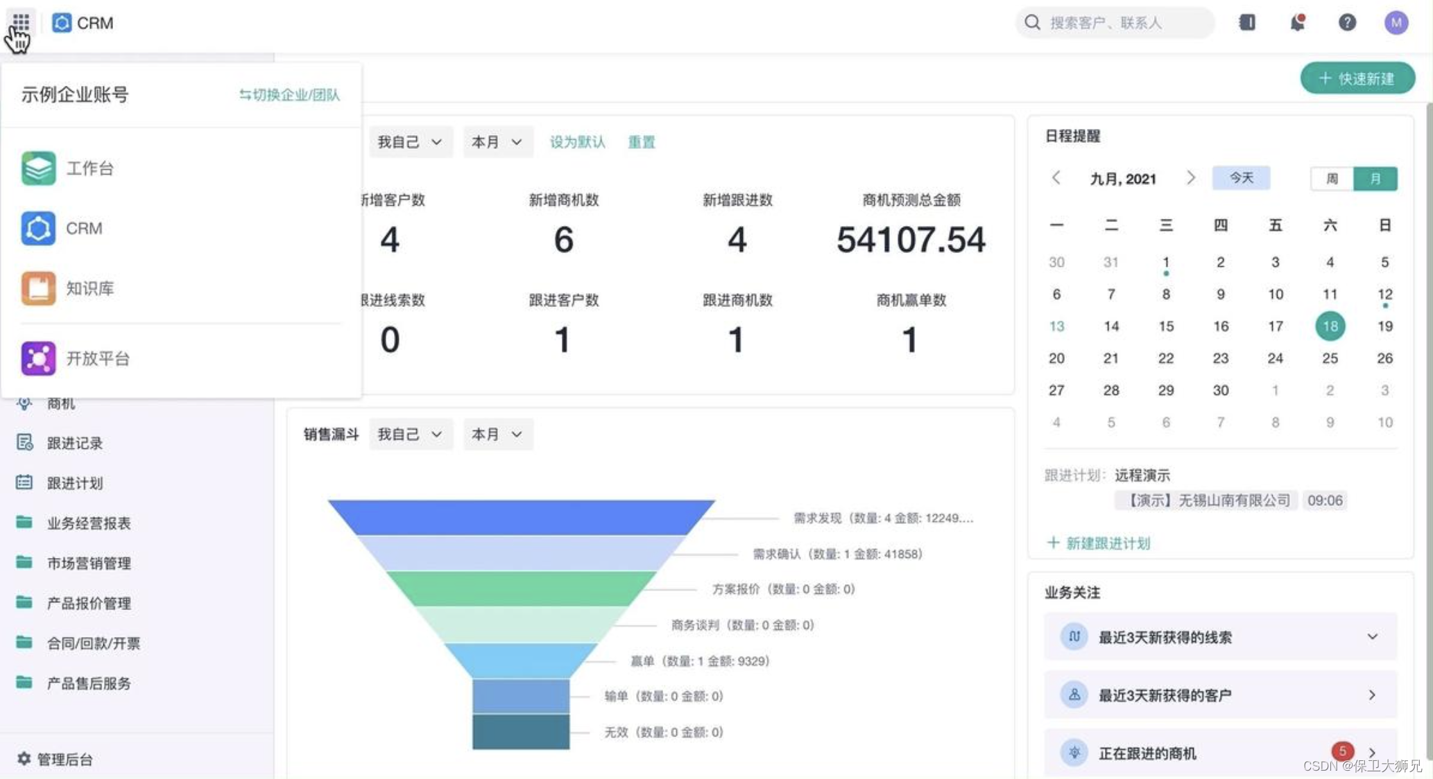 - 客户关系管理(CRM)系统:用于记录客户信息、跟进客户需求、管理销售机会等等。