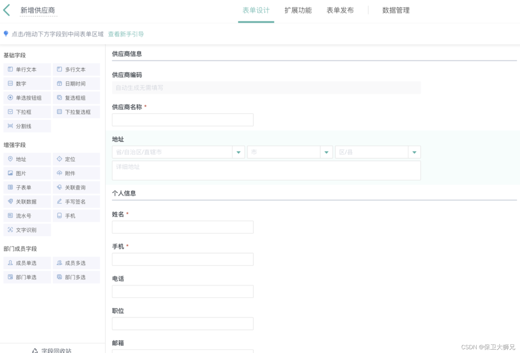 企业内部应用是低代码平台的一个重要应用场景。通过低代码平台,企业内部人员可以快速搭建各种业务应用,从而提高企业的工作效率和业务响应速度。比如: