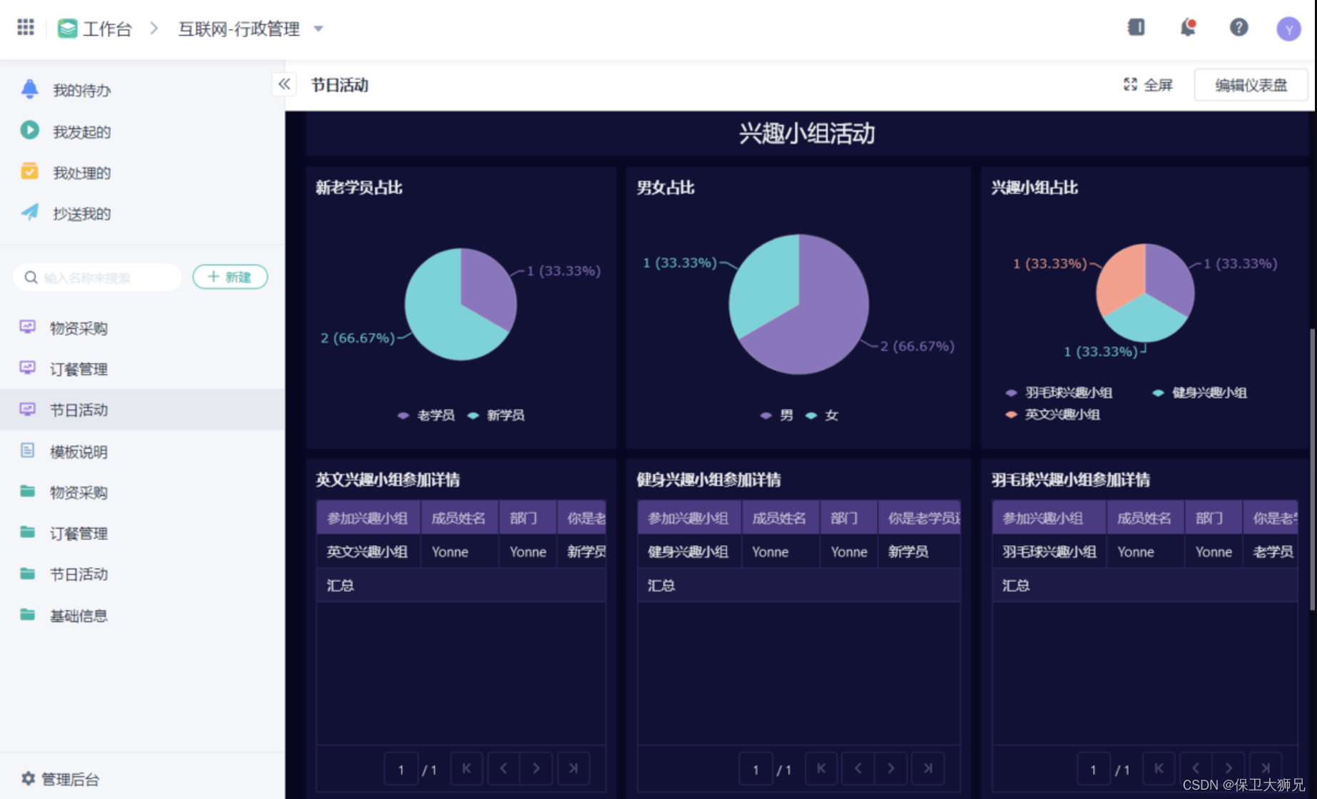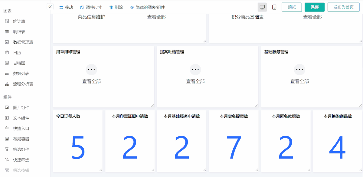 信息统计:这是基础功能了,简道云OA管理系统除了能将大量信息汇总,还能通过仪表盘功能一键呈现数据分析结果