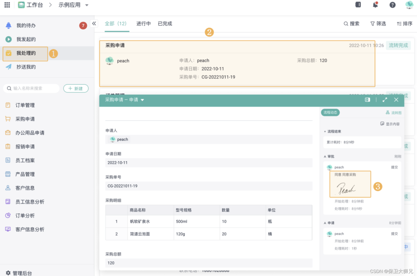 审批:员工通过简道云OA系统提交审批申请,分层级进行审批,系统也会自动催促审批进度,大大提高了审批效率和准确性。