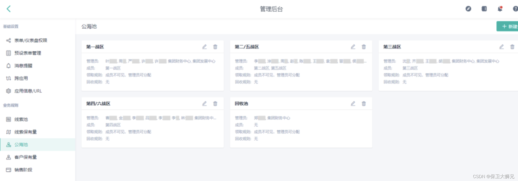1.按照战区区分公海池,每周批量分配公海池客户给销售人员