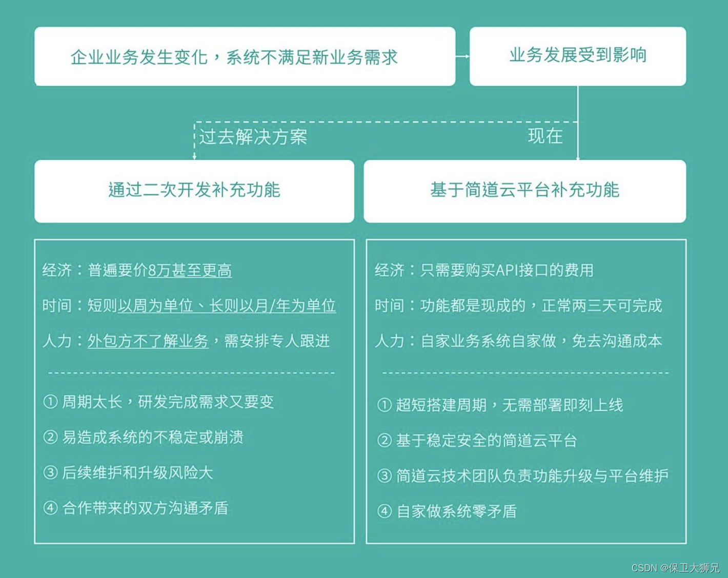 随着企业业务的发展、工作方式的变化,很多内部系统已无法适应新的管理需求。当原有管理系统不能满足现有业务需求,不少企业选择二次开发。