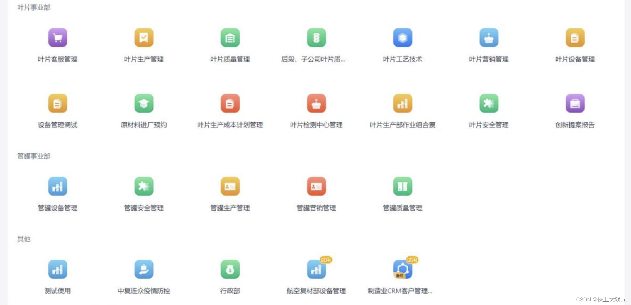 - 集团内使用的大型系统较多: