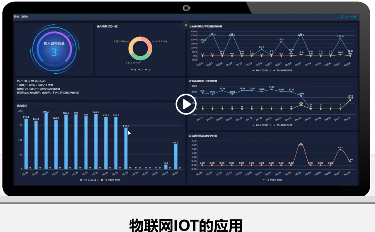- 物联网IOT应用:可以分析每一台注塑机的平均耗电量、注塑机的平均待机时间、机台开关模次数、过去两周的故障时间等