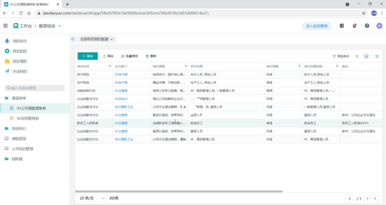 模具这块开始使用后,我们体验到了云表单的便利性,就开始普及到其他部门进行应用管理。