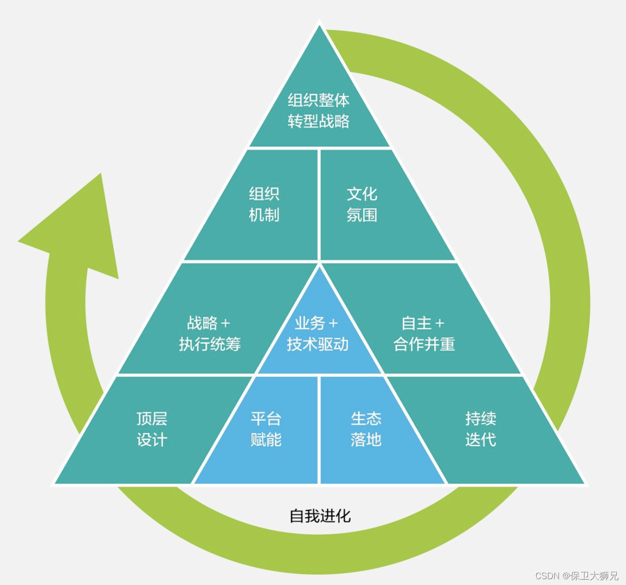 企业数字化转型,管理层是火车头,把控全局决定方向;每一个团队都是一节车厢;而团队里的每一个人是那一个个给予动力的车轮;技术和软硬件支持就是轨道。