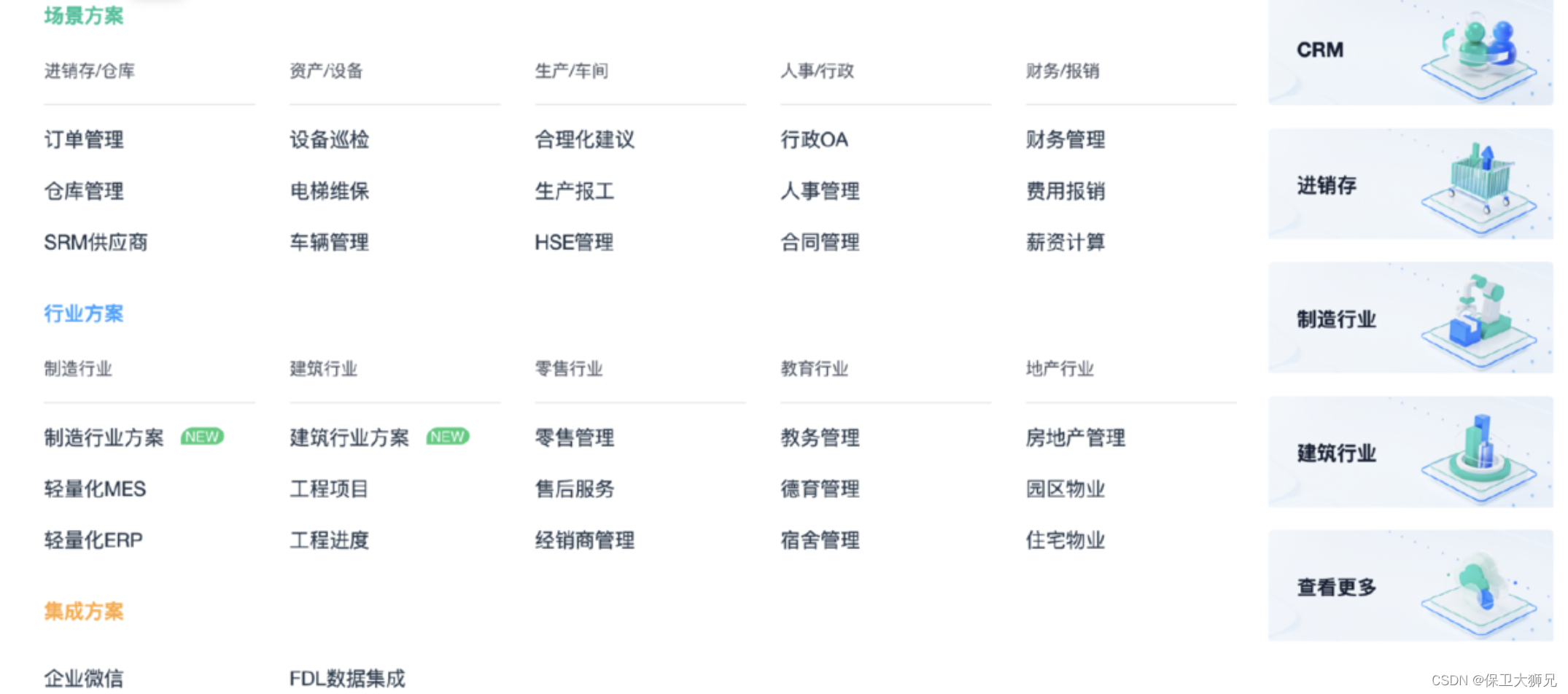 除此之外,简道云中包含着大量的方案模板,如:进销存、CRM、ERP、仓库管理、人事行政OA等,用户只需要通过简单的拖拉拽便能制造出适合自己企业的系统。