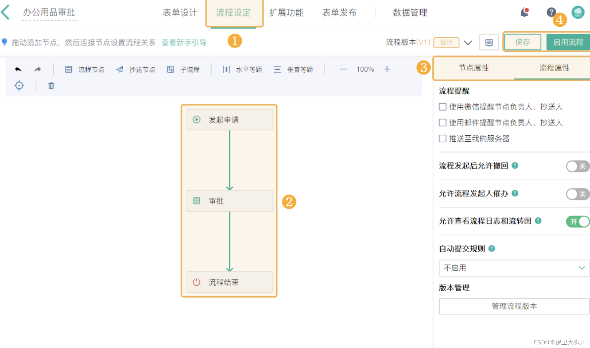 支持多种方式的审批,例如单人审批、多人审批、指定角色审批等等;