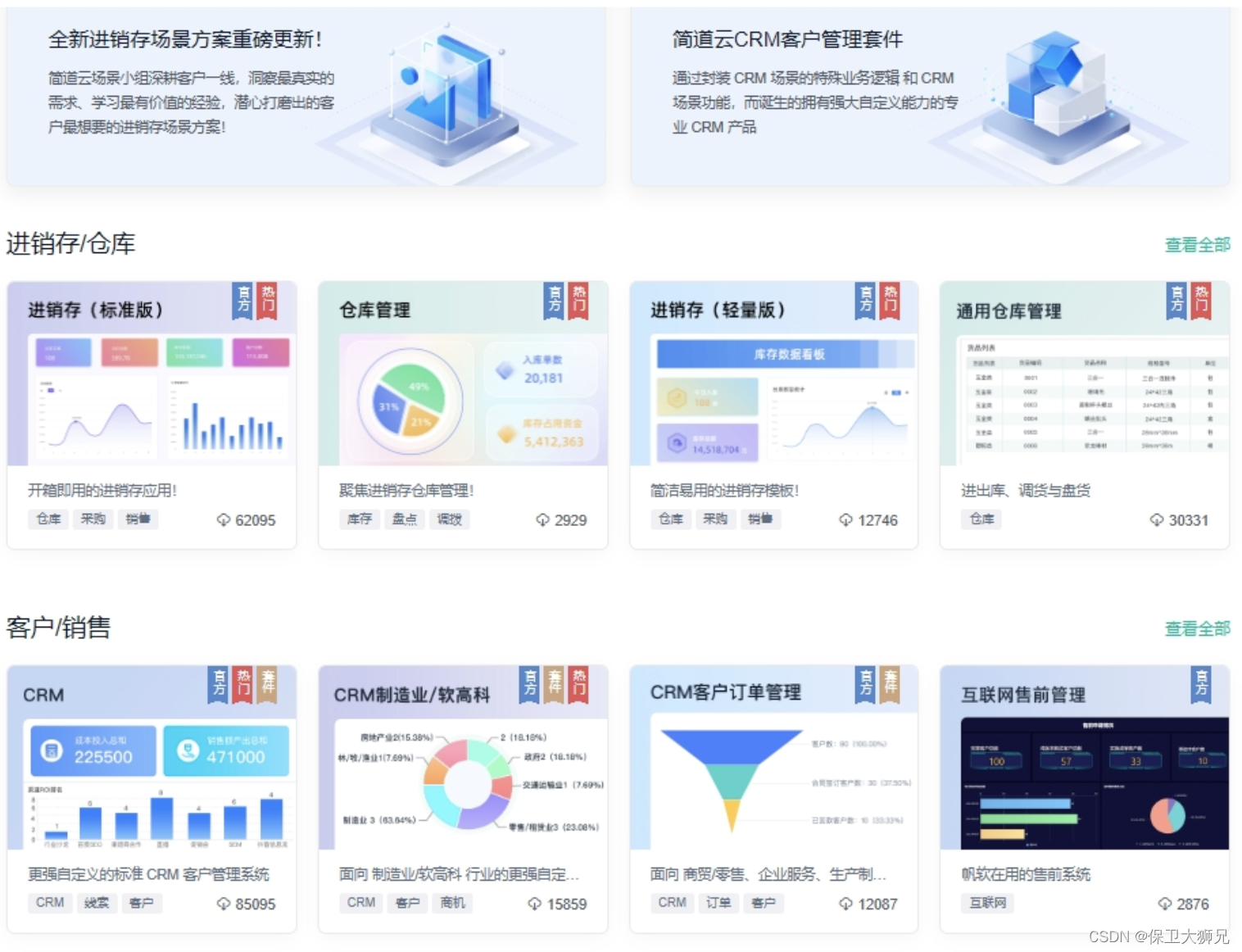 一些快速开发平台还有拥有模版方案,不想自己搭建也可以选择直接使用模版或在模版基础上简单修改。