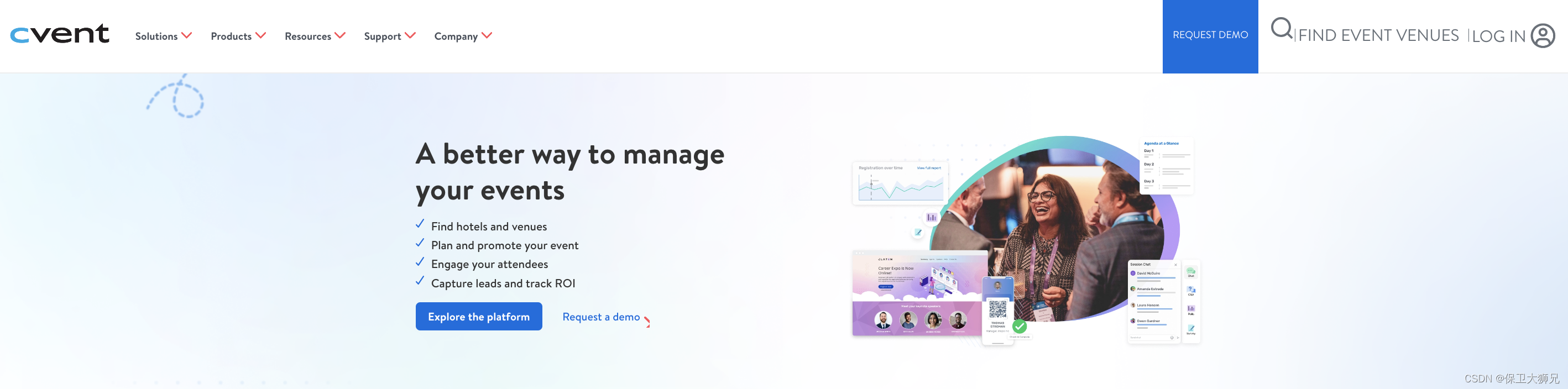 Cvent 是一个基于云的SaaS平台,被 Vista收购。它专门从事会议、活动和酒店管理技术,为现场、虚拟和混合活动提供基于网络的软件,包括在线活动注册、场地选择、活动营销和管理、虚拟和现场以及与会者参与。Cvent 还为酒店和场所提供管理团体和企业旅游业务的软件,并通过其采购平台吸引团体业务。
