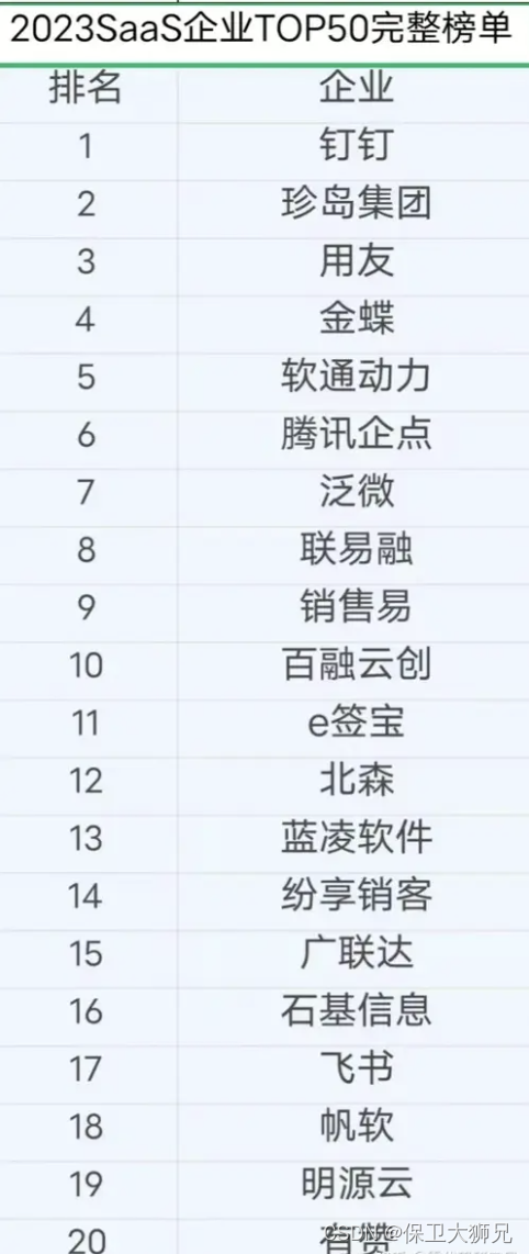 - 2023年SaaS系统国内最新排名