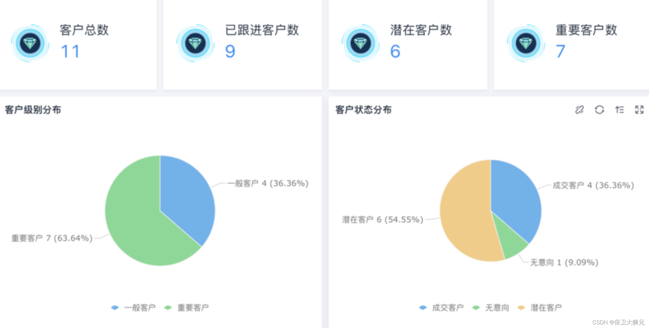 同时,这款CRM客户管理系统背靠国内老牌报表企业——帆软,具有出色的数据分析及展示能力,报表的可视化呈现专业且美观。