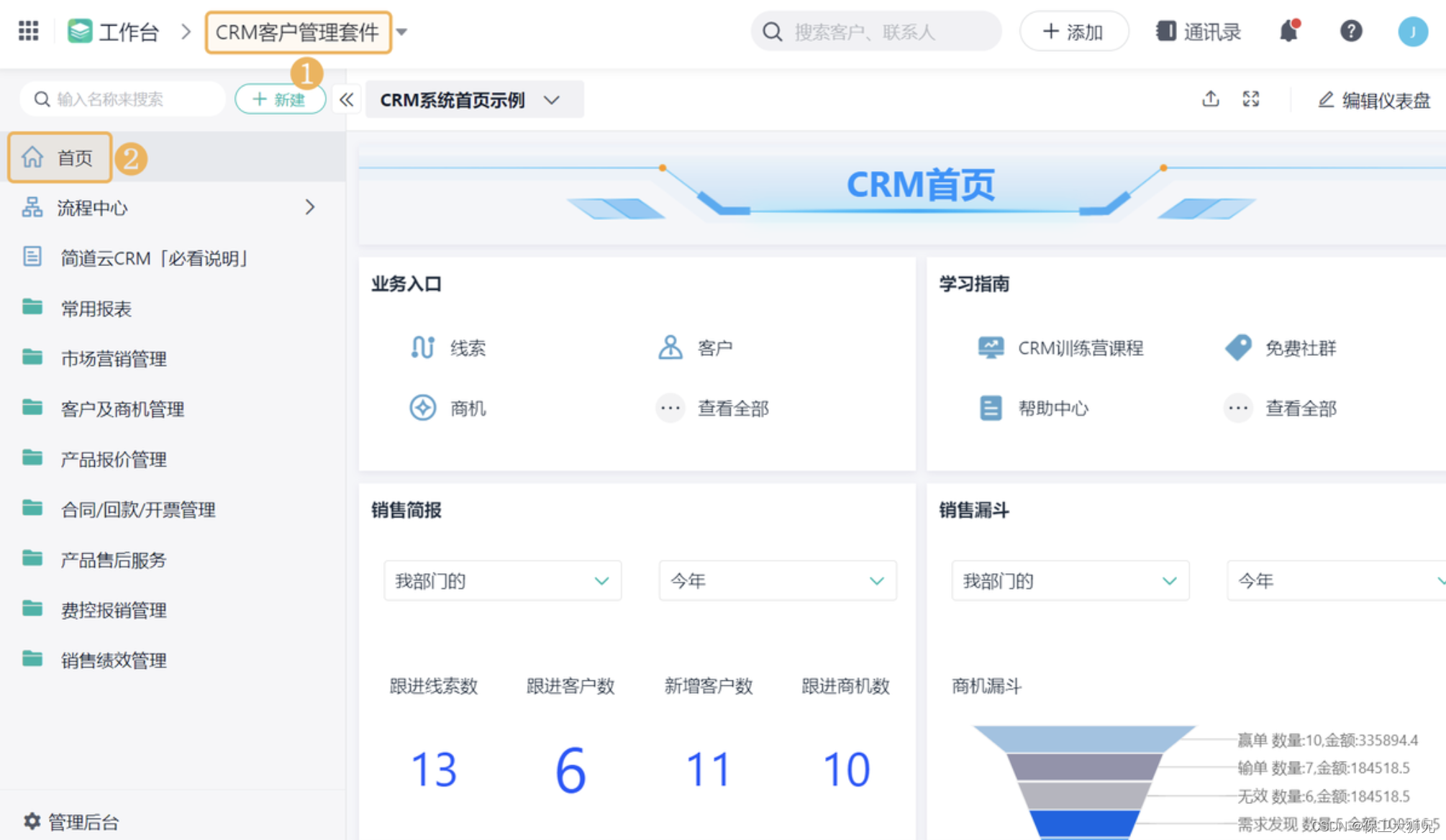 以下将以我在用的简道云销售管理系统为例介绍销售管理的流程