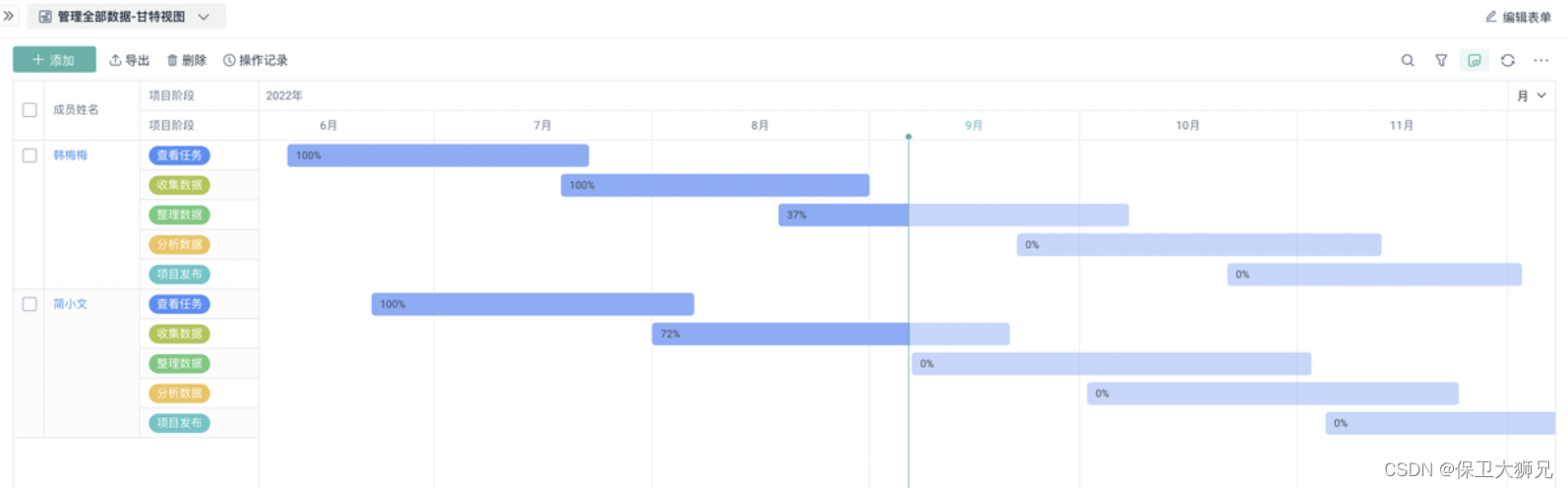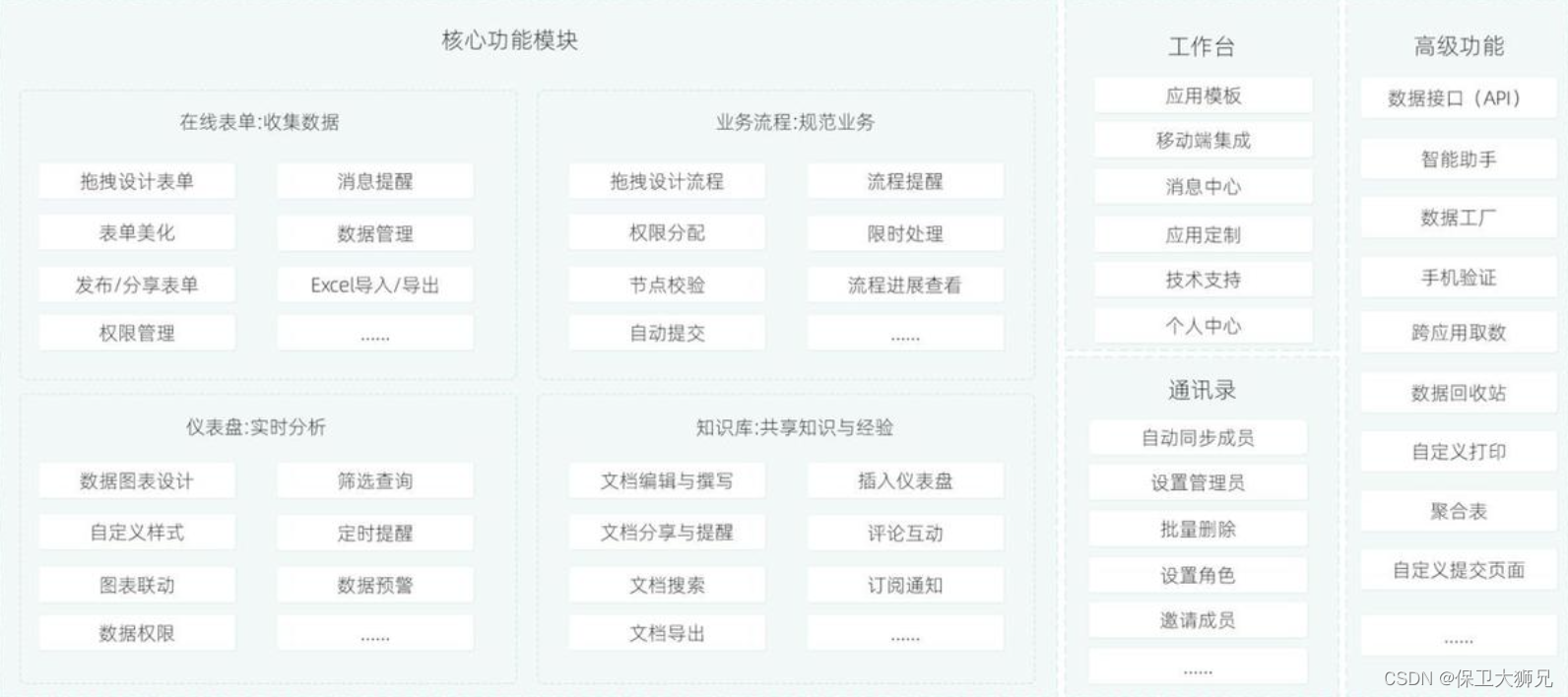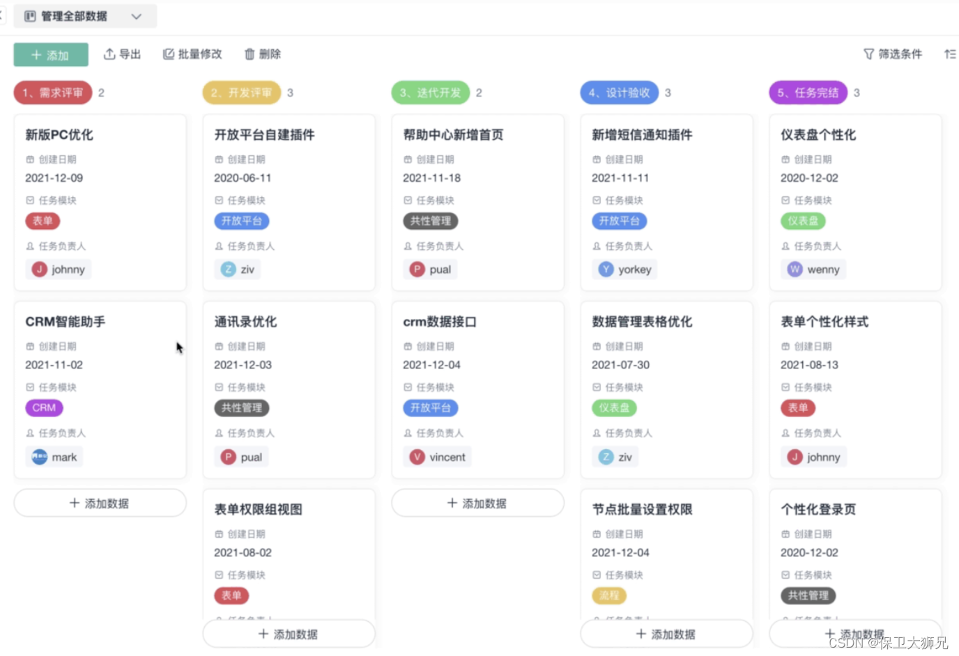 ⭐可拓展性强,管理者可以基于自己的业务,搭建其他管理应用。例如,人事发现在工作中不仅需要项目管理系统,还需要做KPI、节日活动系统时,这些都可以实现。