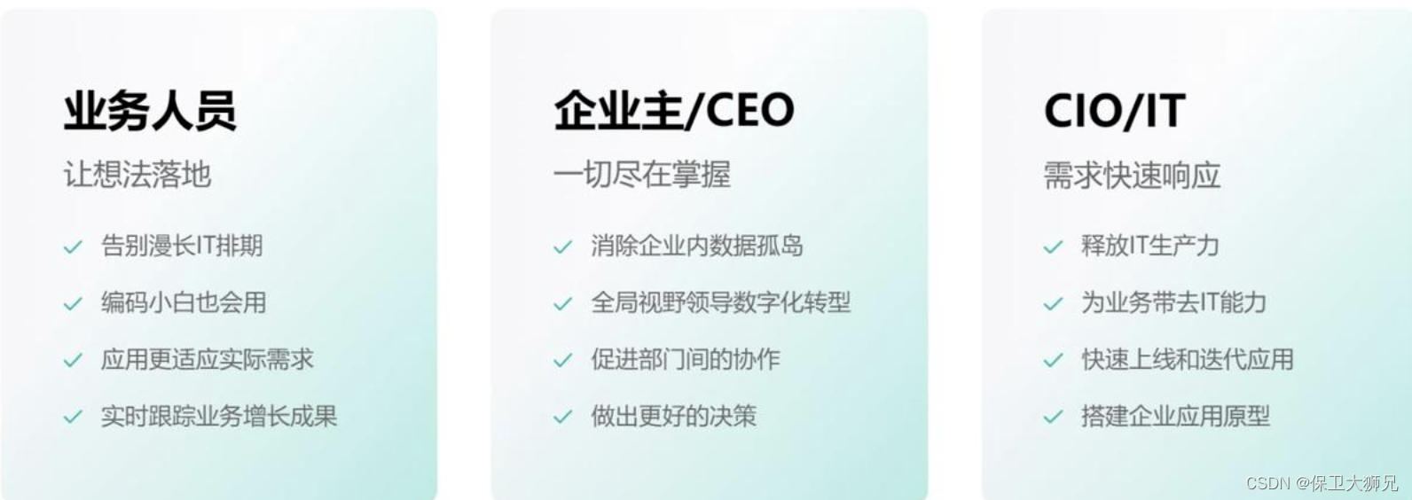 而SaaS低代码软件则允许不懂代码的业务人员也能轻松开发应用,只要你懂业务,你就能开发出满足需求的个性化业务系统。