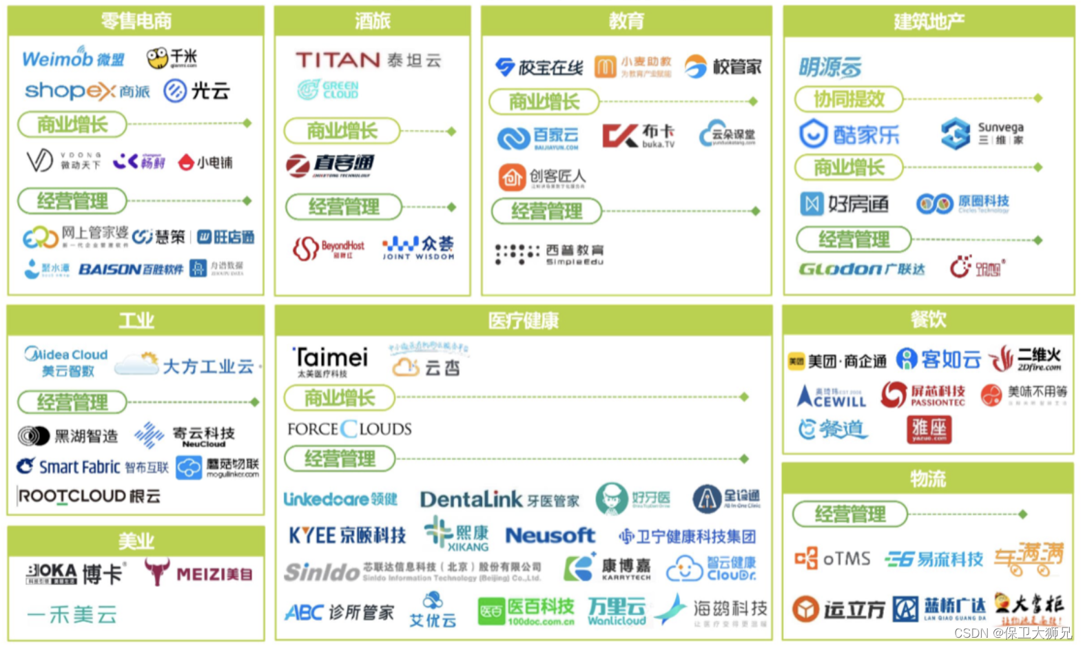 - 行业垂直型:与业务垂直型不同,行业垂直型SaaS是针对特定行业提供服务的。