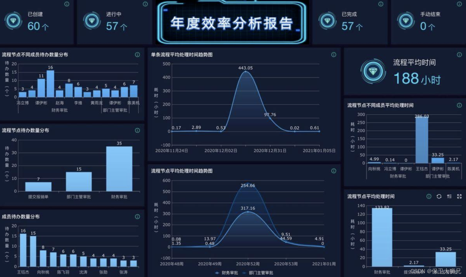在系统中,拖拽式即可进行仪表盘设计,对各应用数据进行自动汇总分析,呈现多维度的数据分析仪表盘、管理报表、管理驾驶舱等。
